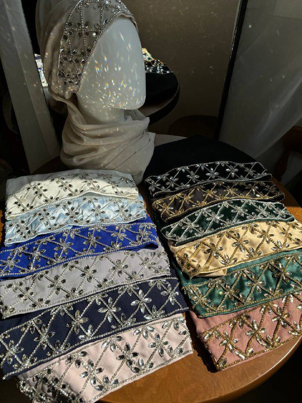 متریال روی کار ها تماما دست دوز شده و از بهترین متریال سنگ و مروارید استفاده شده