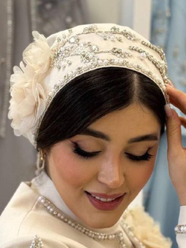متریال: کرپ کار شده با سنگ و کریستال و گل های دست ساز