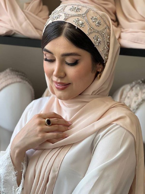جنس کرپ حریر ( زیر شال کلاه دوخته شده ، فیکس محکم روی سر میمونه و اصلا مو ، گردن مشخص نیست)