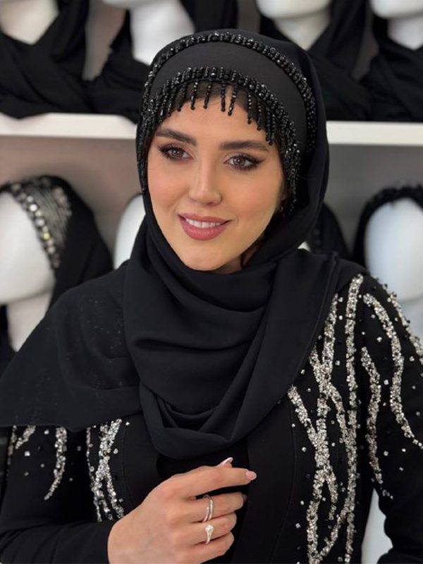 جنس کرپ حریر ( زیر شال کلاه دوخته شده ، فیکس محکم روی سر میمونه و اصلا مو ، گردن مشخص نیست)
