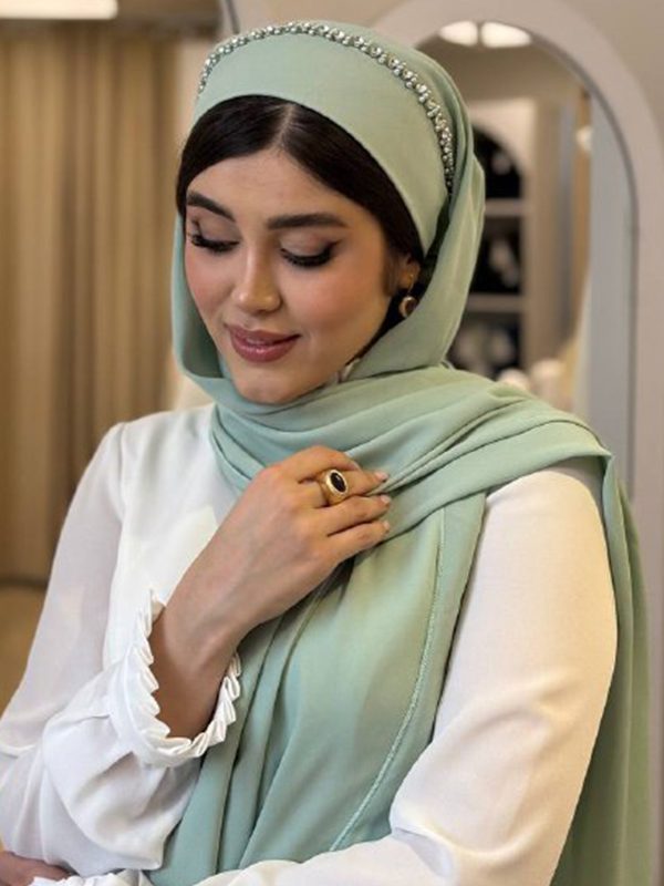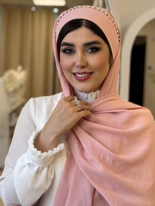 جنس کرپ حریر ( زیر شال کلاه دوخته شده ، فیکس محکم روی سر میمونه و اصلا مو ، گردن مشخص نیست)