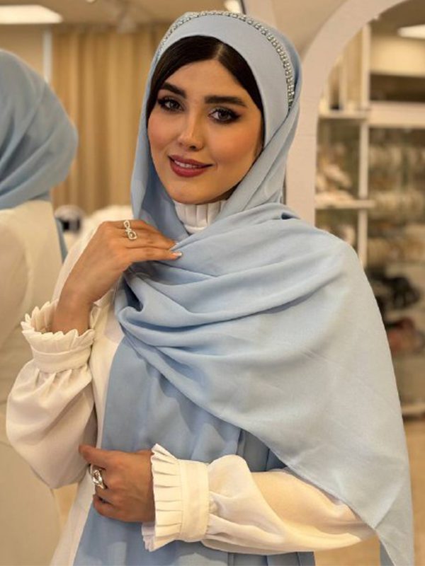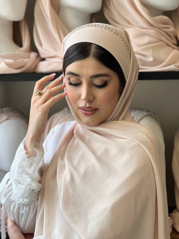 جنس کرپ حریر ( زیر شال کلاه دوخته شده ، فیکس محکم روی سر میمونه و اصلا مو ، گردن مشخص نیست)