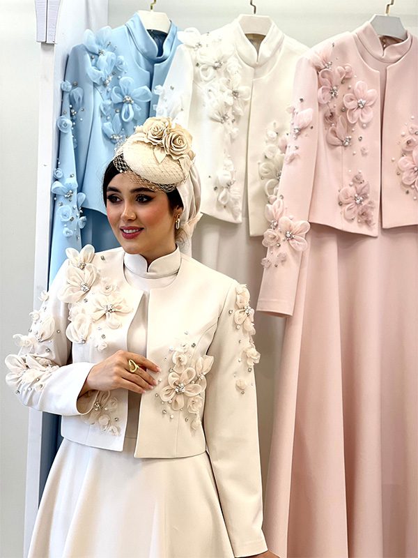 مترلیال استفاده شده از مروارید و سنگ و گل های دست ساز