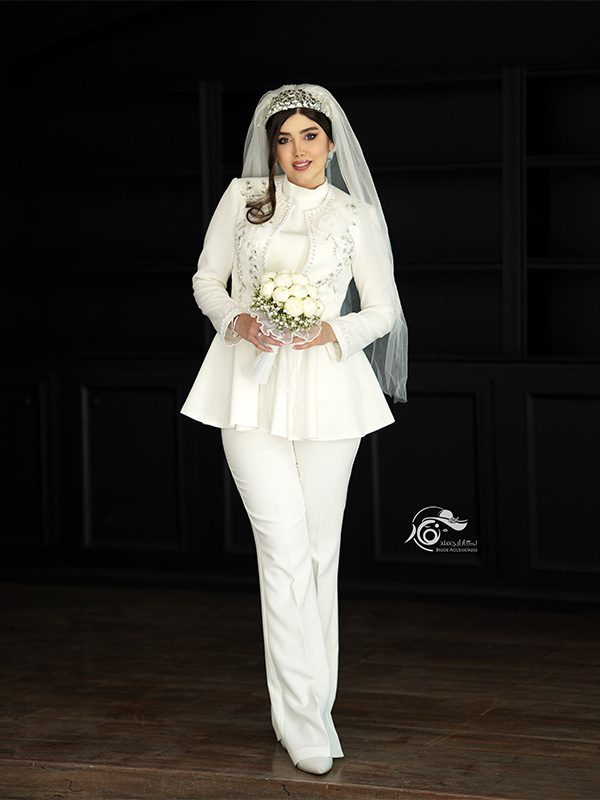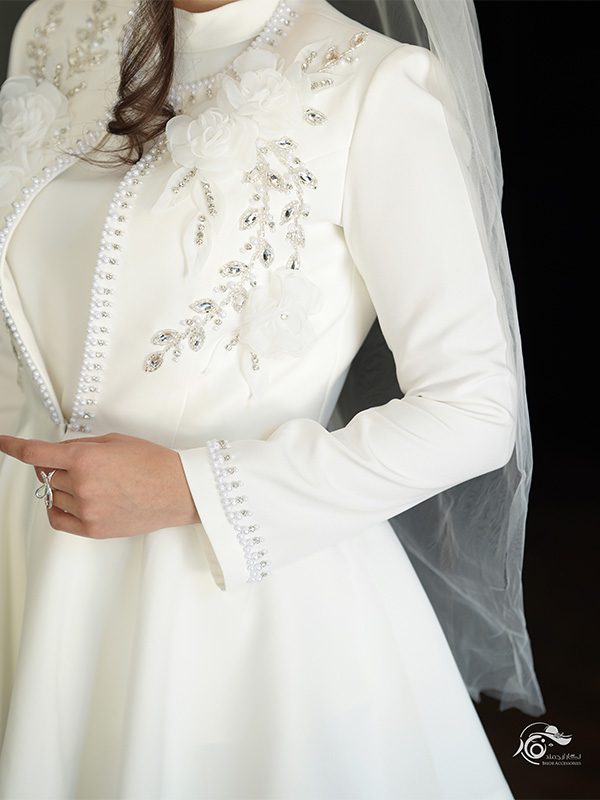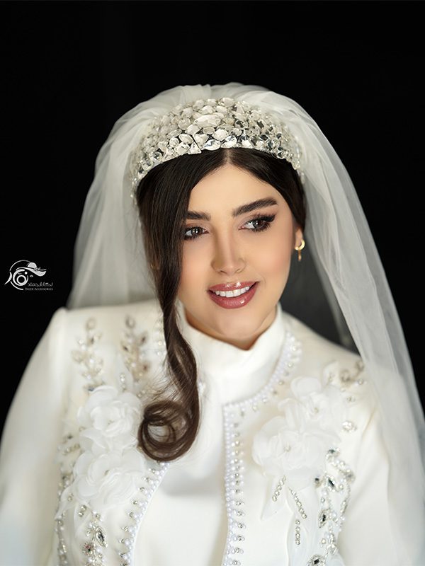 استفاده شده از گلهای دست ساز پارچهای، مروارید، سنگ و کریستال